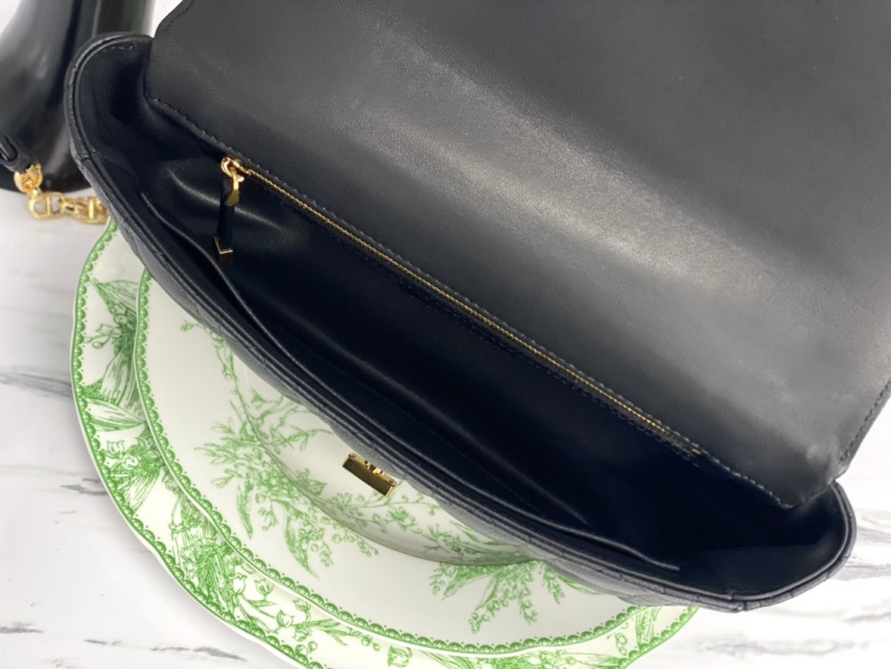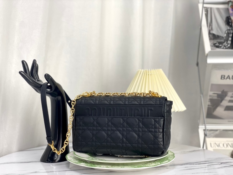 - 结构:翻盖开合搭配旋钮式 CD 扣环 背面 30 Montaigne 压花标志 可拆卸、可调节的 CD 链环肩带,搭配军装风格的 Christian Dior 搭扣 2 个可拆卸链环搭配 X 形中间凹口设计,便于打开链条 内部拉链口袋和贴袋 后侧口袋 可随心搭配其他刺绣肩带 内含防尘袋