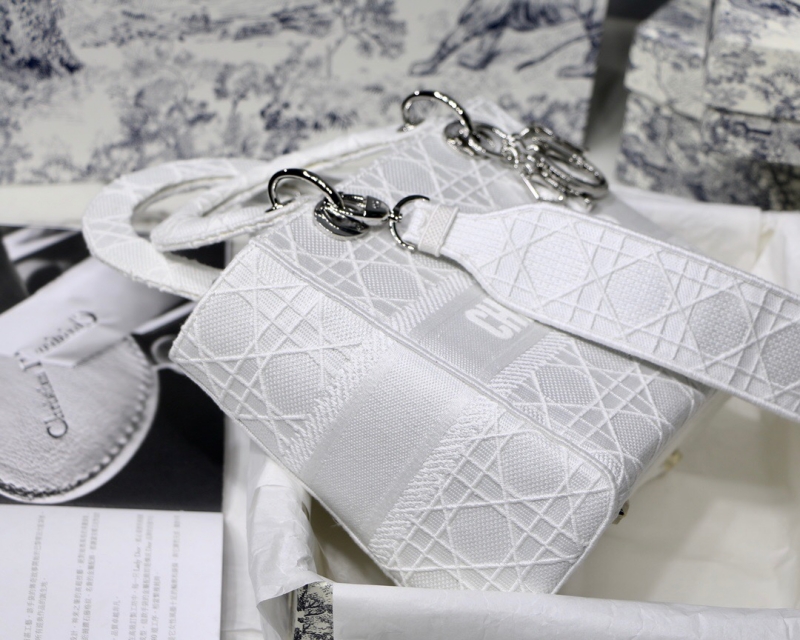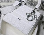 • M0565 迪奥Dior 中号 Lady D-Lite 手袋 藤格纹刺绣 白色