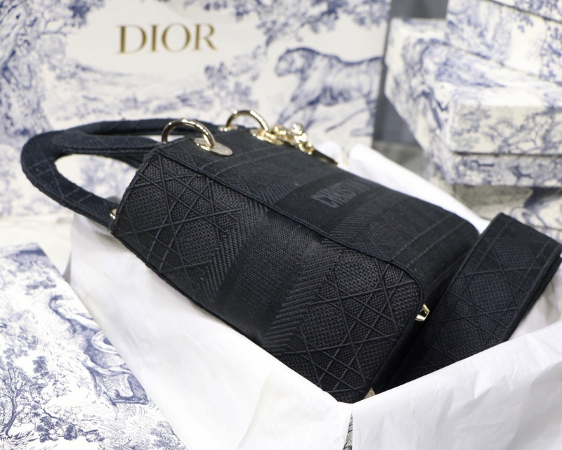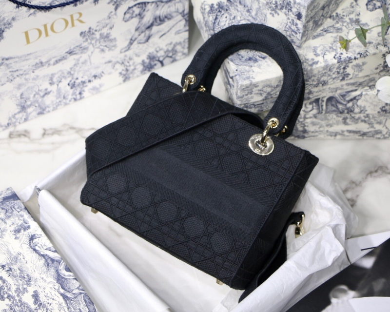 - M0565 迪奥Dior 中号 Lady D-Lite 手袋 藤格纹刺绣 黑色
