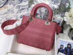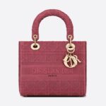 - M0565 迪奥Dior 中号 Lady D-Lite 手袋 藤格纹刺绣 木槿粉色
