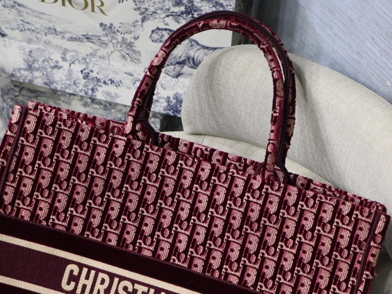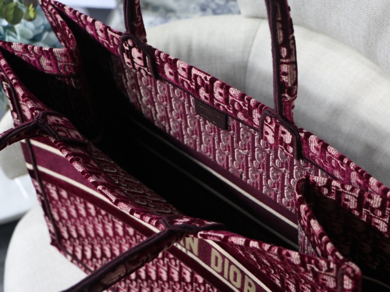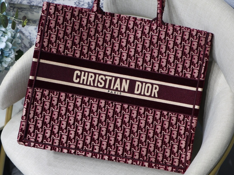 - M1286 Dior Book Tote 大号手袋 酒红色 Oblique 印花