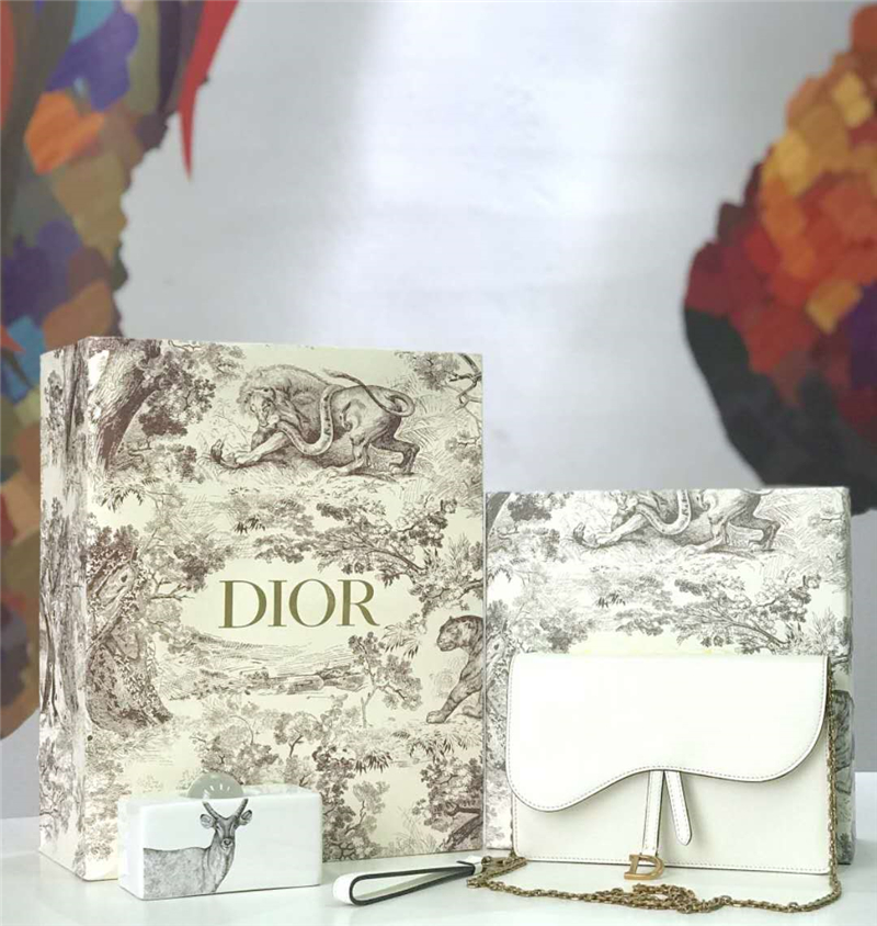 - M5620 Dior Saddle系列女包 woc包型 小牛皮 迪奥链条包 Dior手拿包 白色