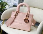 • M0565 迪奥Dior 中号 Lady D-Lite 手袋 藤格纹刺绣 紅木色