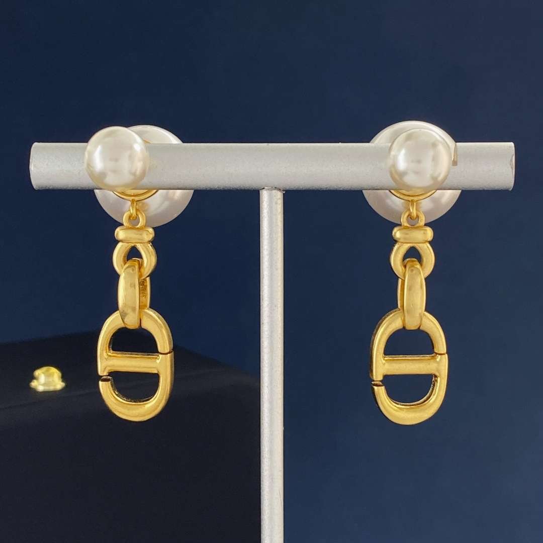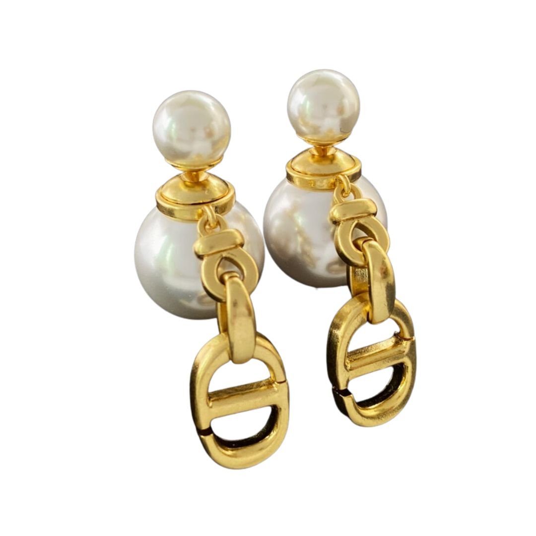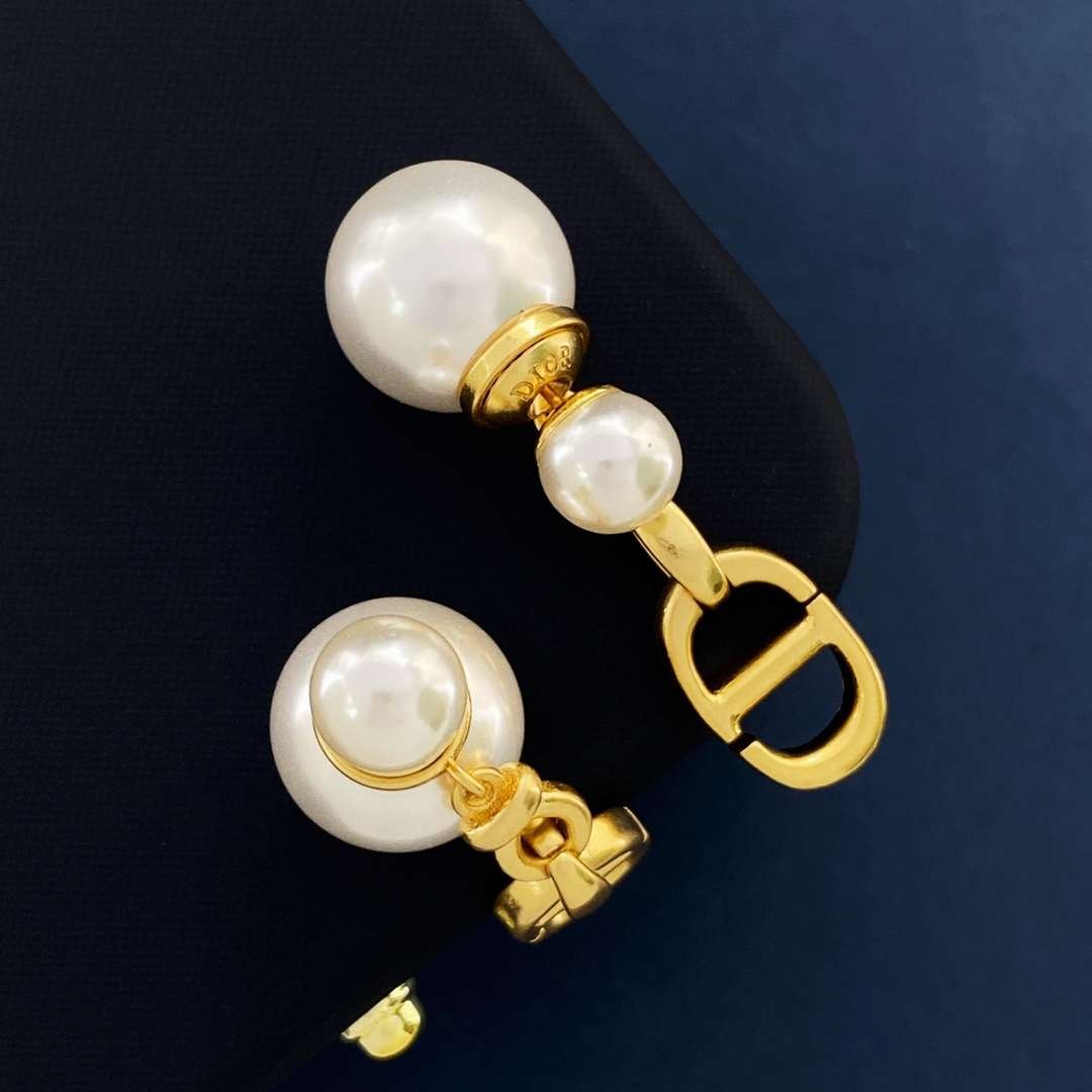 Dior 女士双字母塑料泡泡珍珠耳环金色