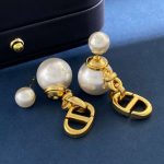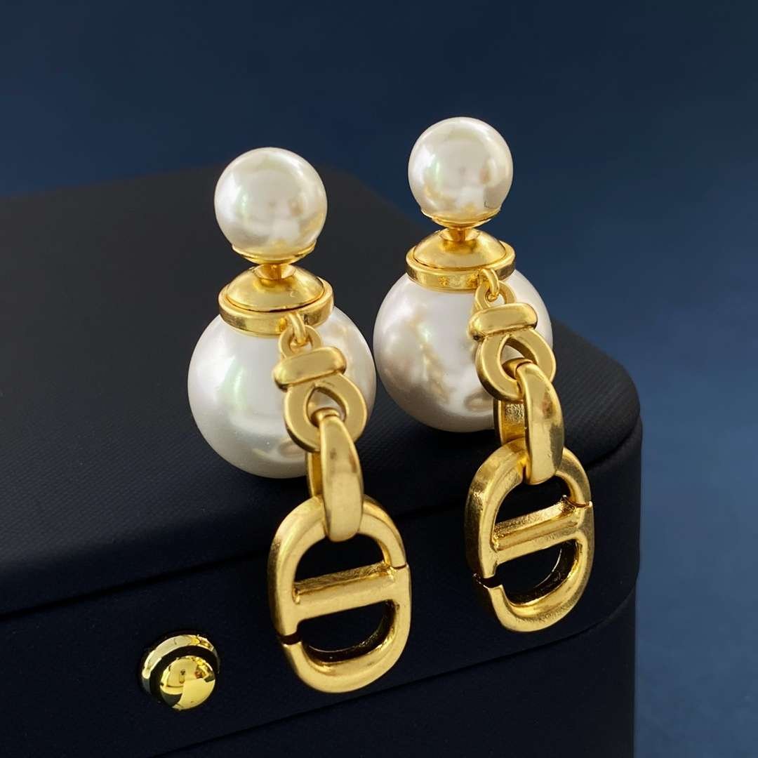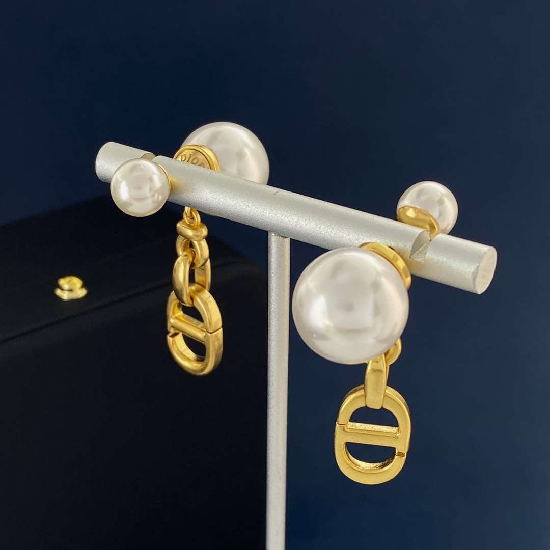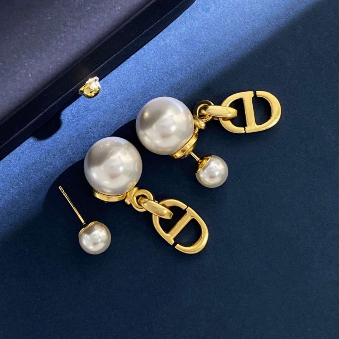 Dior 女士双字母塑料泡泡珍珠耳环金色