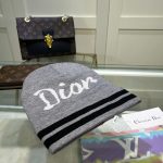 Dior 灰色绒球毛线帽
