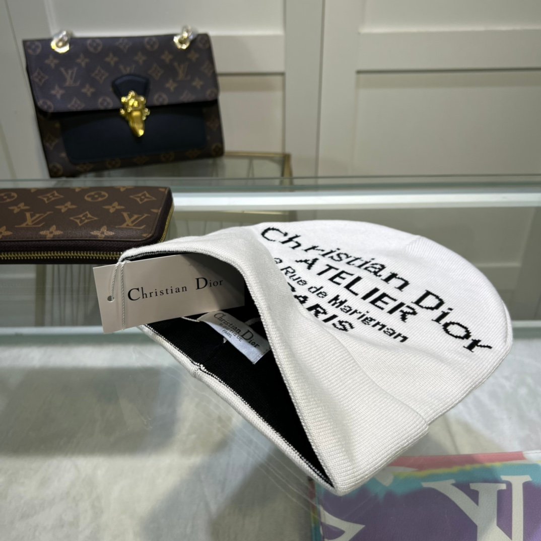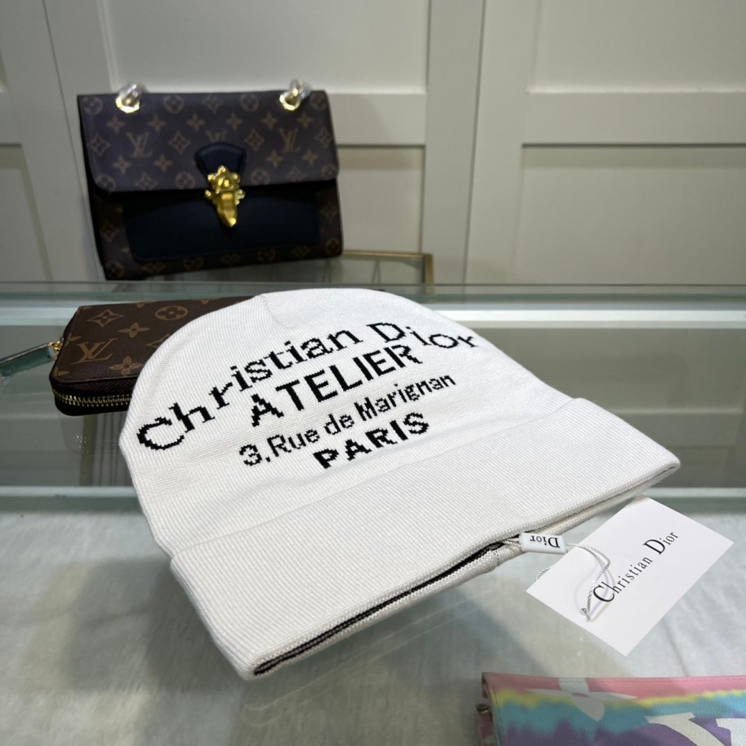 Dior 白色绒球毛线帽