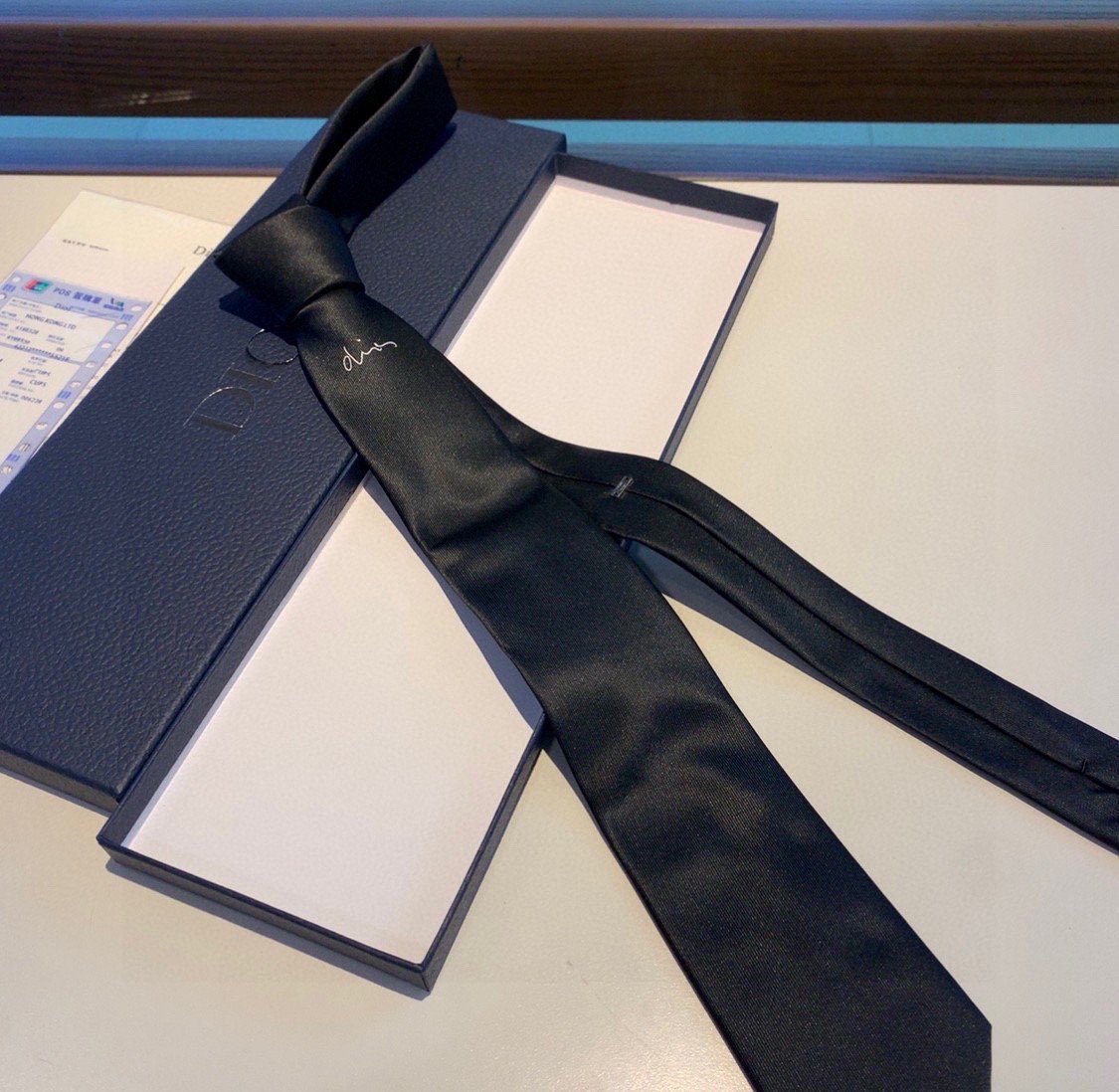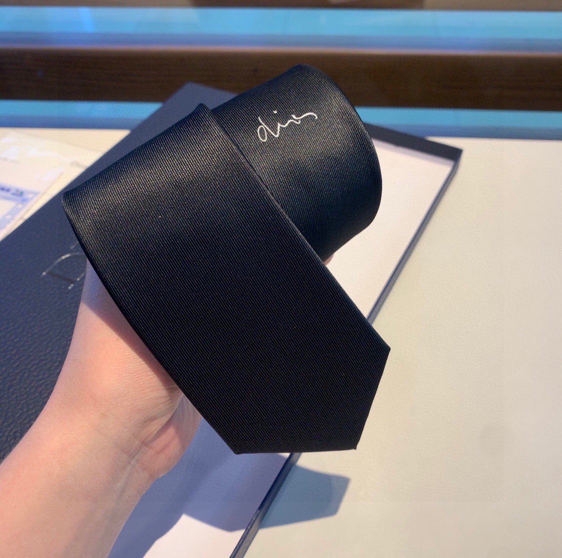 结下方有灰色“Dior”提花图案