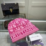 Dior 粉色绒球毛线帽