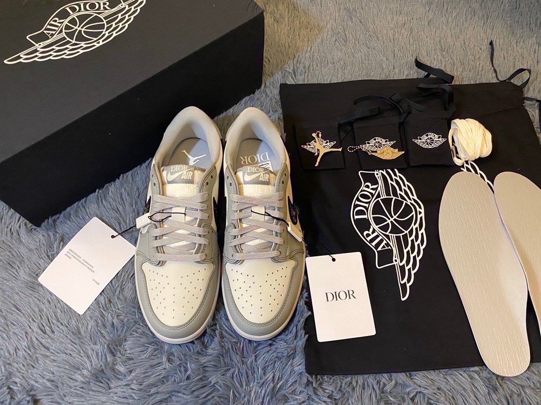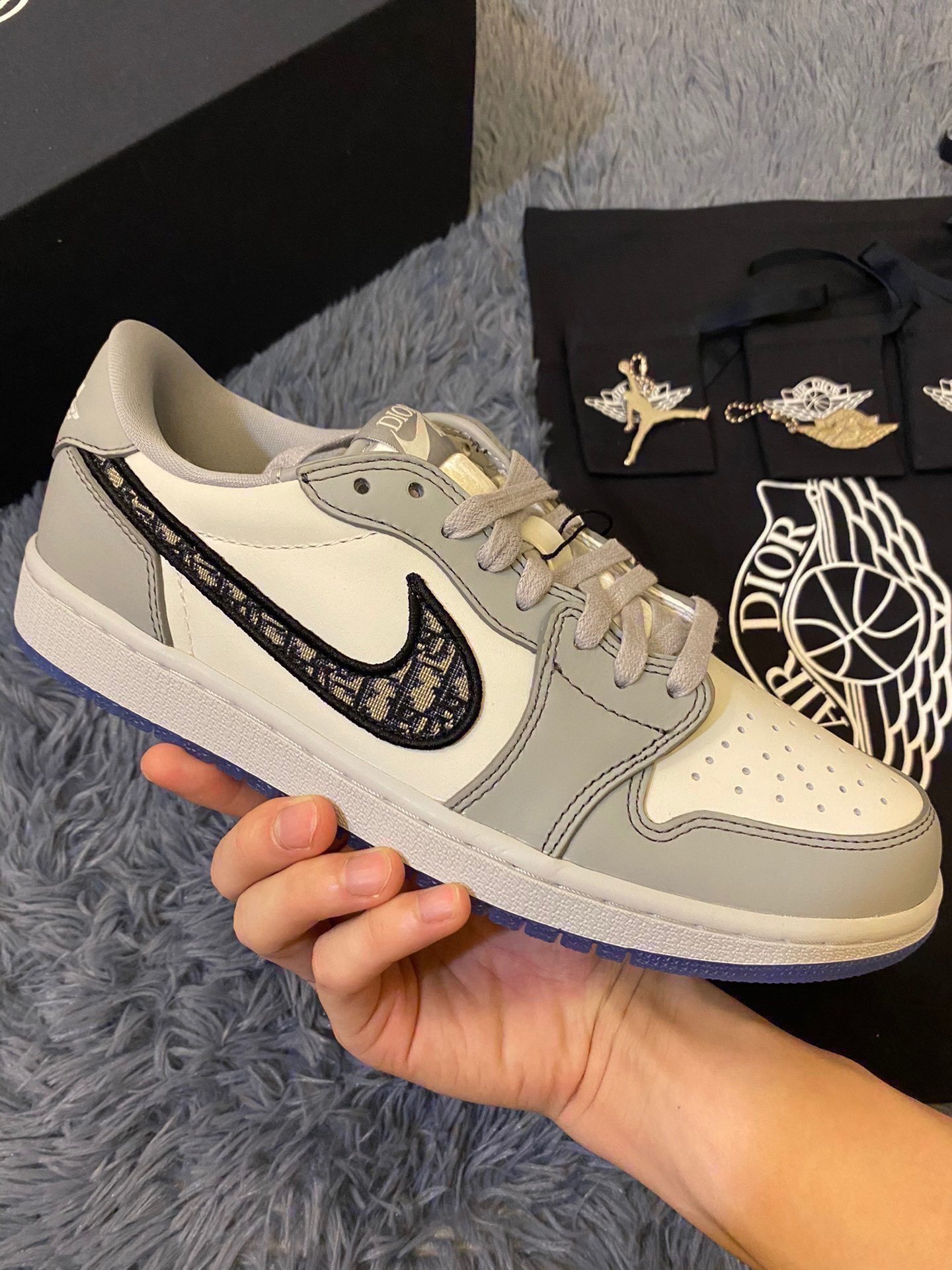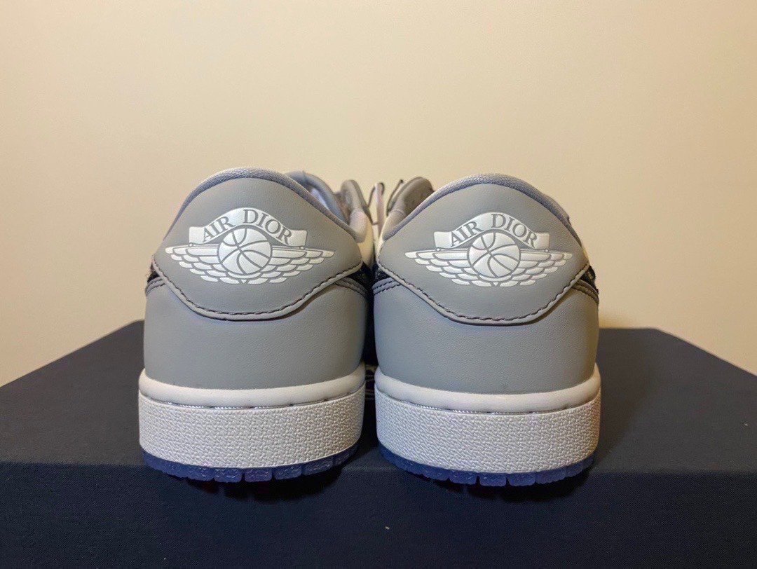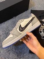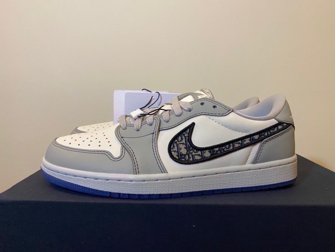 Dior * Air Jordan 1 男士低帮灰色和白色运动鞋,男鞋