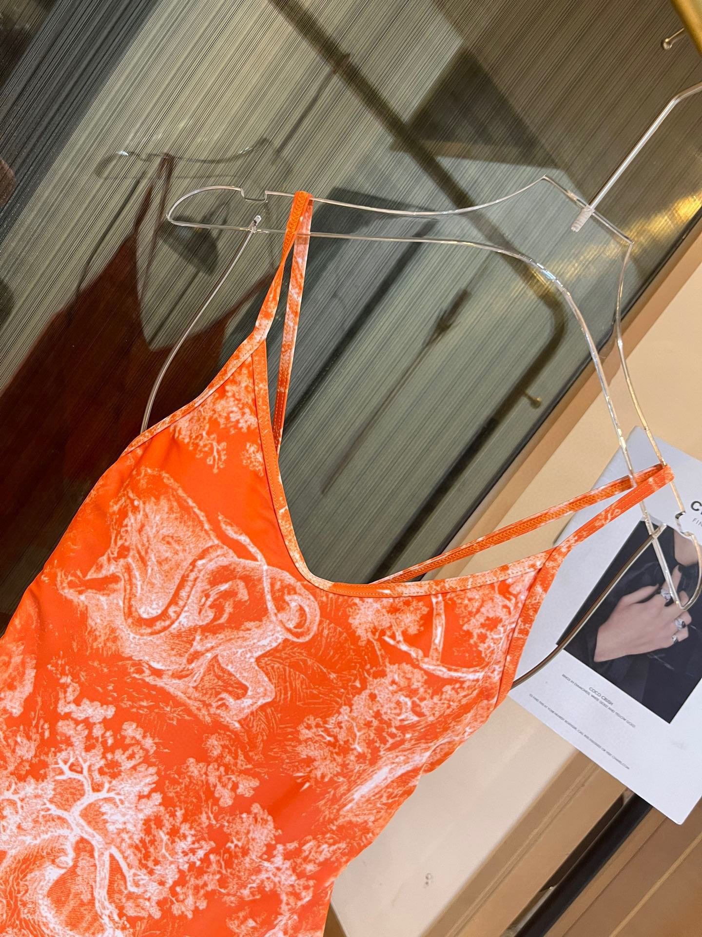 这款连体泳衣属于 Dioriviera 胶囊系列,采用 Toile de Jouy Reverse 图案,这是品牌标志性图案的一种变体,带有玩相反的颜色。采用灰色和粉色技术面料制成,V 领和交叉背带的设计与众不同。这款泳衣可与其他 Dioriviera 作品搭配,打造完美造型。