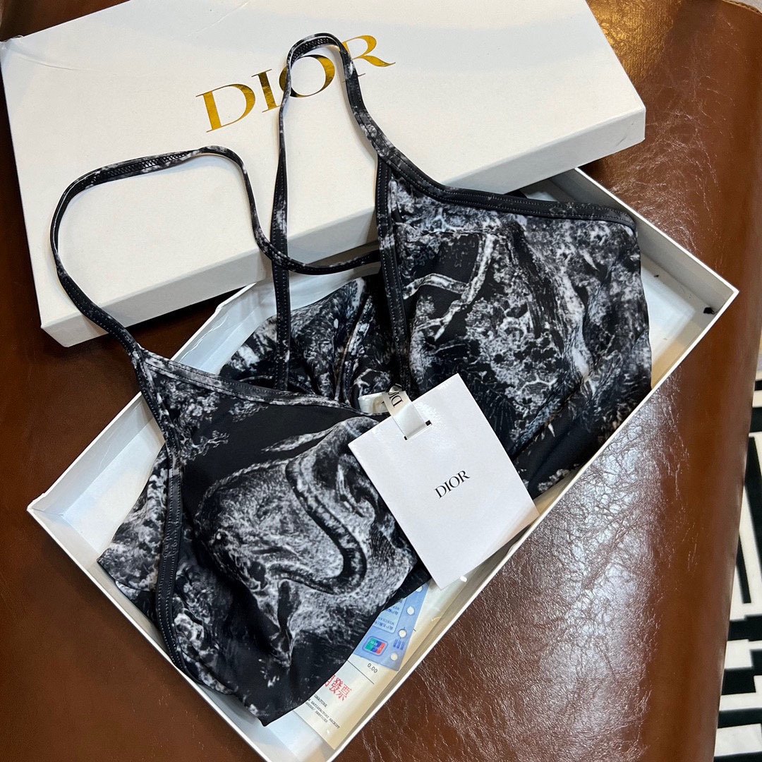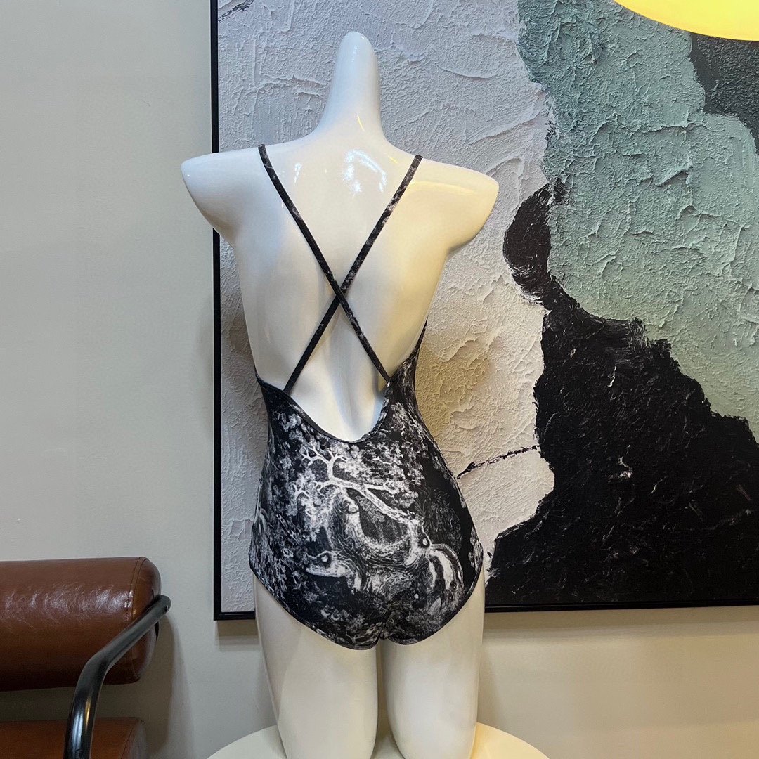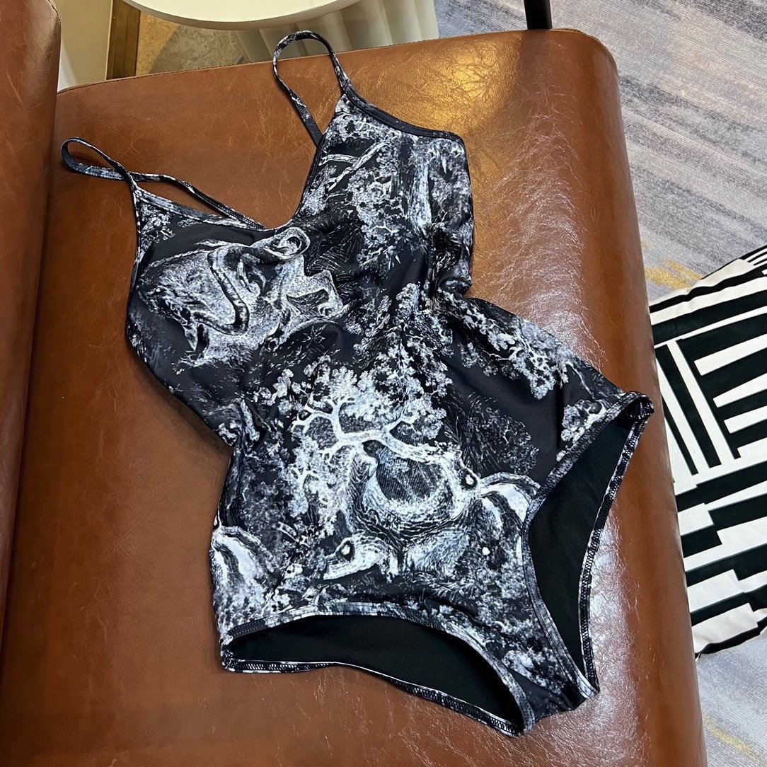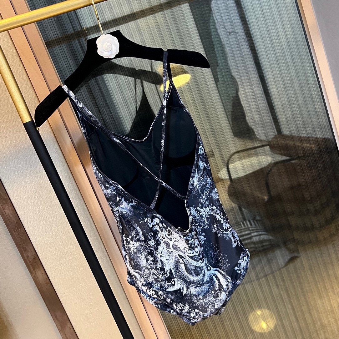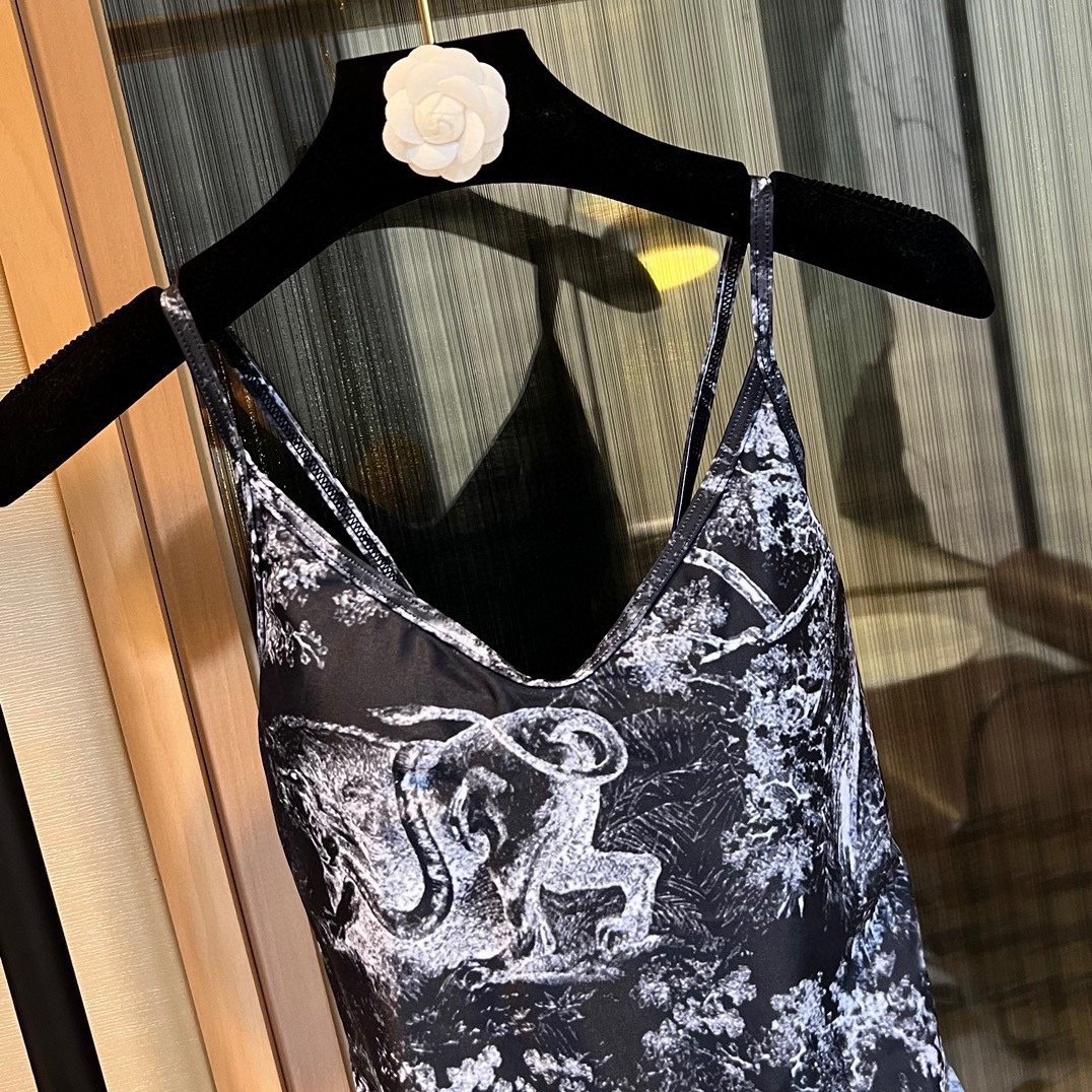 这款连体泳衣属于 Dioriviera 胶囊系列,采用 Toile de Jouy Reverse 图案,这是品牌标志性图案的一种变体,带有戏剧效果在相反的颜色上。采用灰色和粉色技术面料制成,V 领和交叉背带的设计与众不同。这款泳衣可与其他 Dioriviera 作品搭配,打造完美造型。