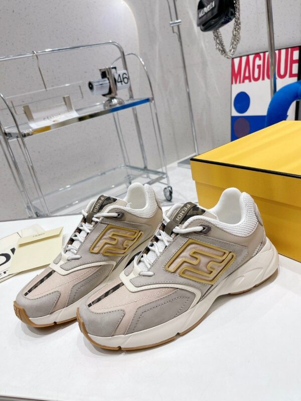 Baguette FD 剪裁高跟 FF 雪尼尔靴,方头。雪尼尔材质,饰有坯布和黑色提花 FF 图案。鞋跟镶嵌 FF 图案。