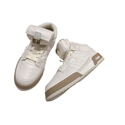 特别版 FD Fendi Match 系带高帮运动鞋,庆祝 Baguette 诞生 25 周年,配有 Baguette 口袋舌头上的细节。橡胶鞋底,侧面带有 Fendi 字样。