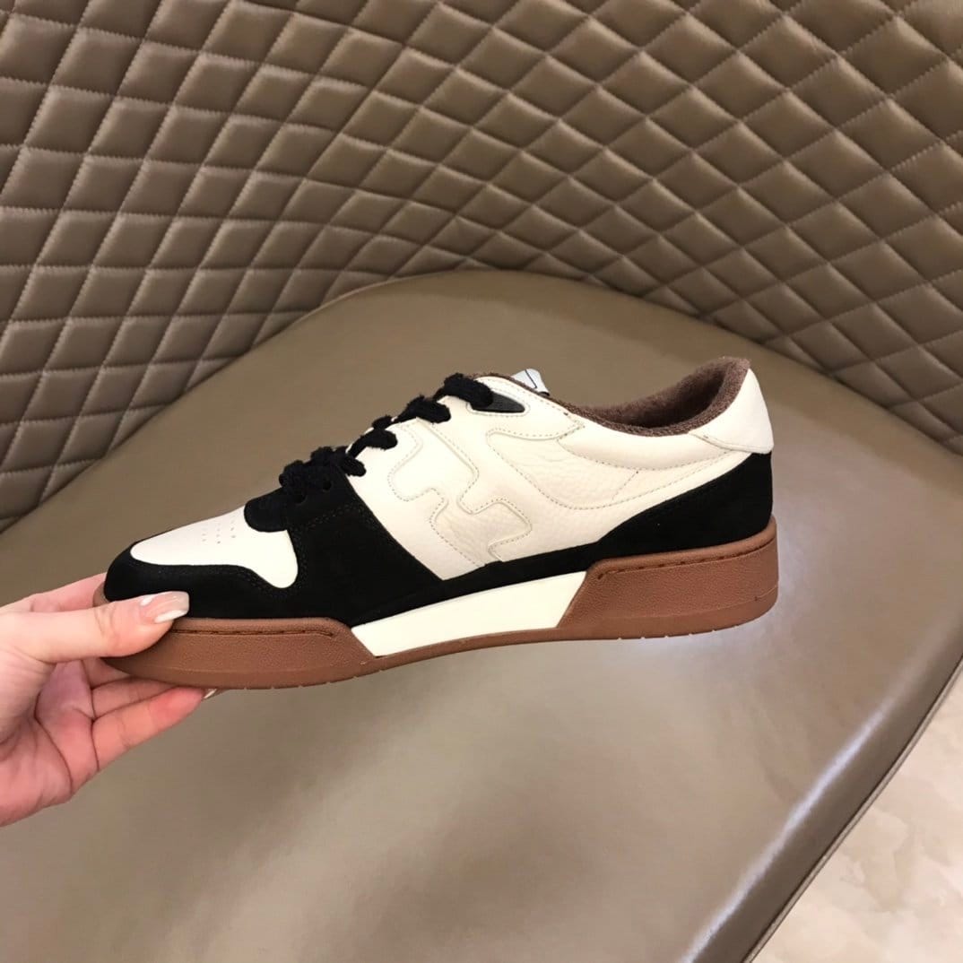 FD Fendi Match 低帮运动鞋鞋舌上饰有复古标签,设计紧凑。侧面缝有 FF 图案,鞋底压纹 Fendi 字样。饰有同色系衣领和鞋带。带缓冲垫的包覆橡胶鞋底。