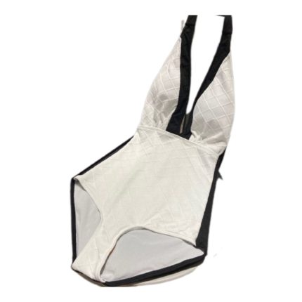 Fendi’s one-piece bathing suit with white color is the main tone of Fendi lettering with black lettering effect, low slit on the back.