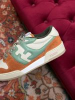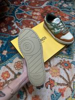 Fendi Match 紧凑设计运动鞋,鞋舌上饰有复古标签。侧面缝有 FF 图案,鞋底压纹 Fendi 字样。采用苋菜色制成,带有白色帆布细节和绿色 FF 图案。饰有同色系毛圈衣领和鞋带。包覆橡胶鞋底,带有浅米色缓冲垫。该款式包括第二对白色棉质鞋带。