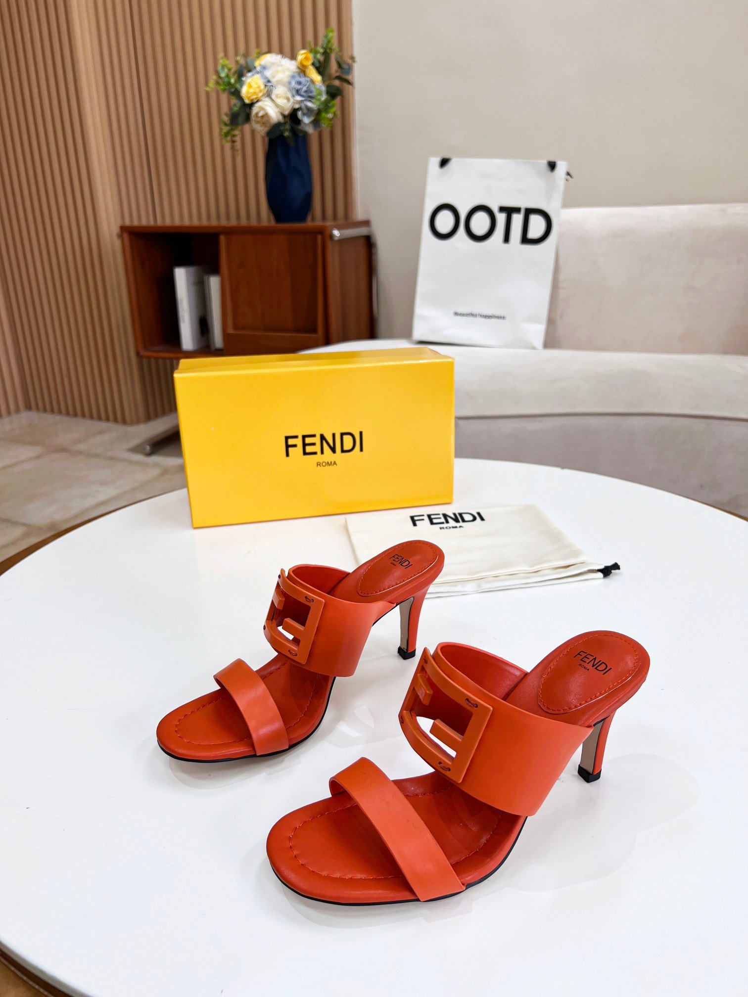 Fendi 女式长方形棕色高跟鞋 8R8287AE7TF1C4R