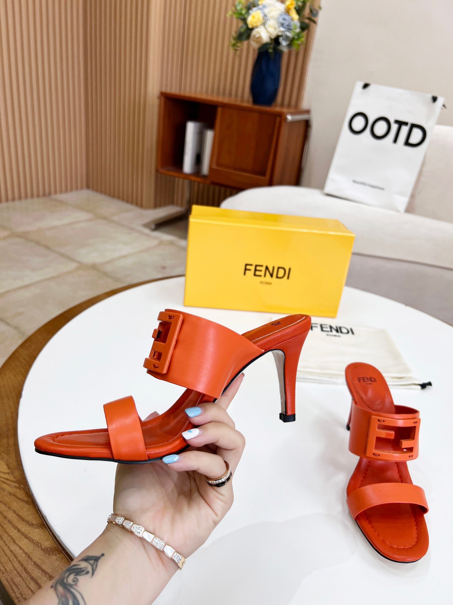 Fendi 女式长棍棕色高跟鞋 8R8287AE7TF1C4R