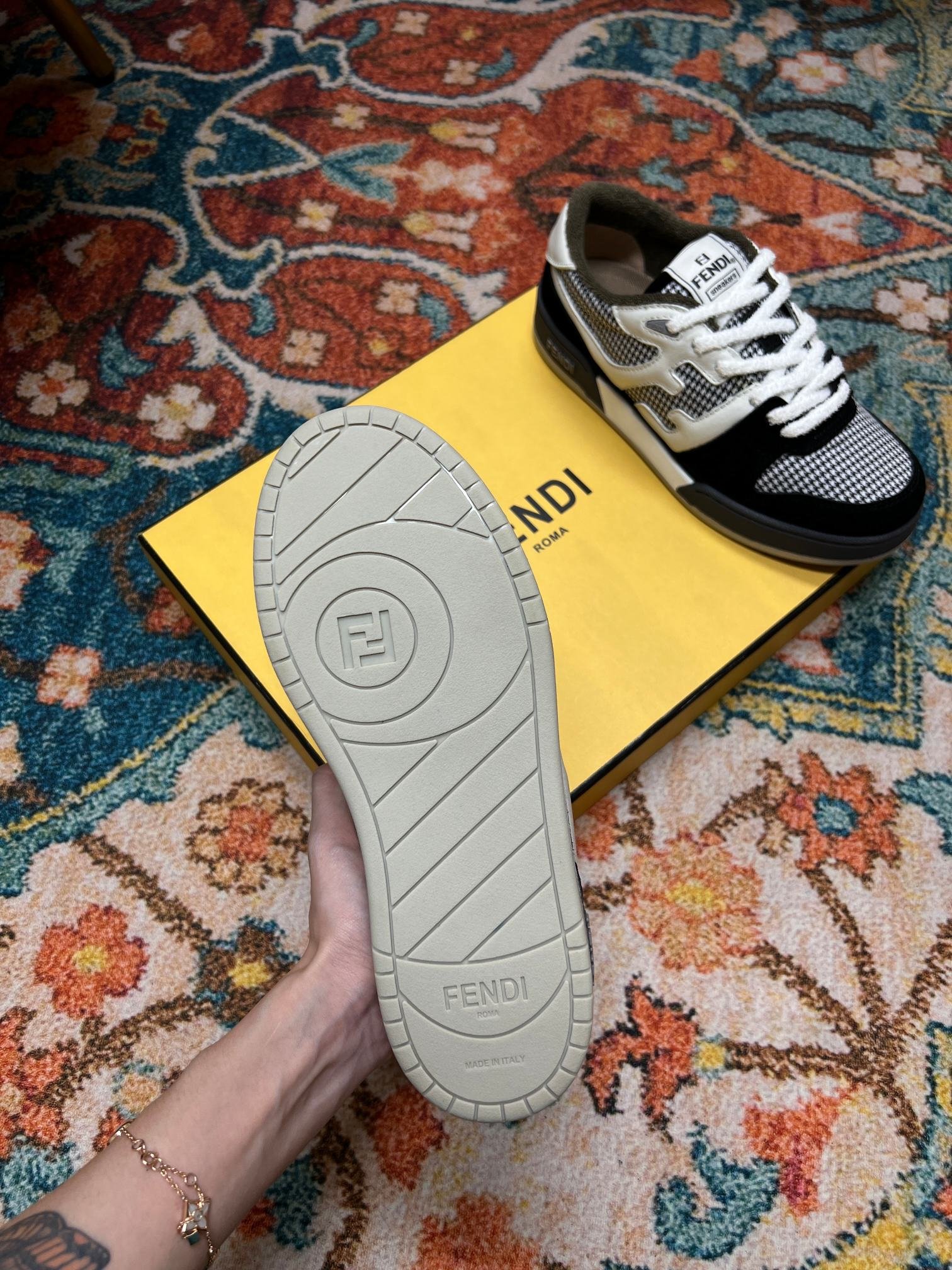 Fendi Match 系带运动鞋。由黑色制成。白色和千鸟格面料细节。橡胶鞋底,侧面印有 Fendi 字样。