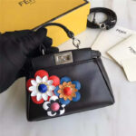 - FENDI 芬迪新款 时装秀羊皮MICRO PEEKABOO 太阳花花朵小猫包 黑色彩花