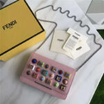 FENDI 芬迪 小牛皮彩色铆钉包 链条包 樱花粉