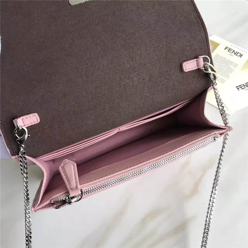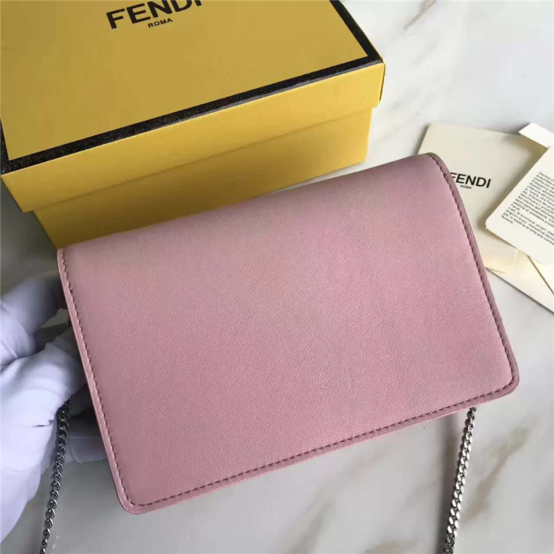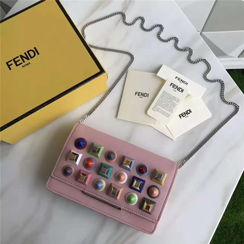 - FENDI 芬迪 小牛皮彩色铆钉包 链条包 樱花粉