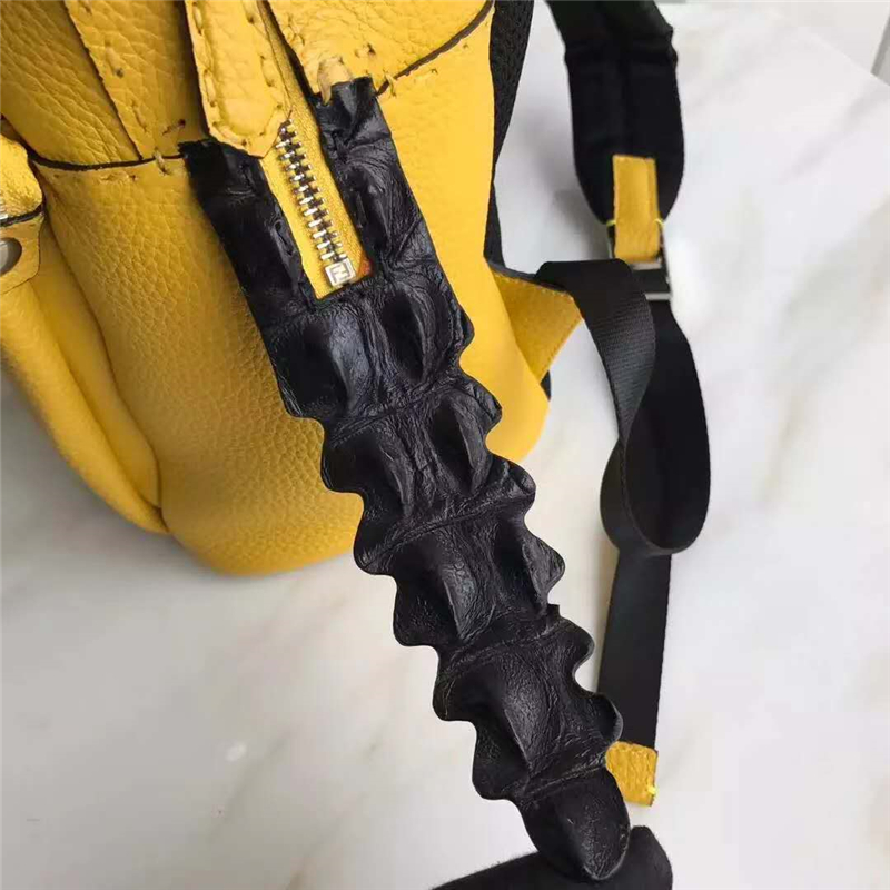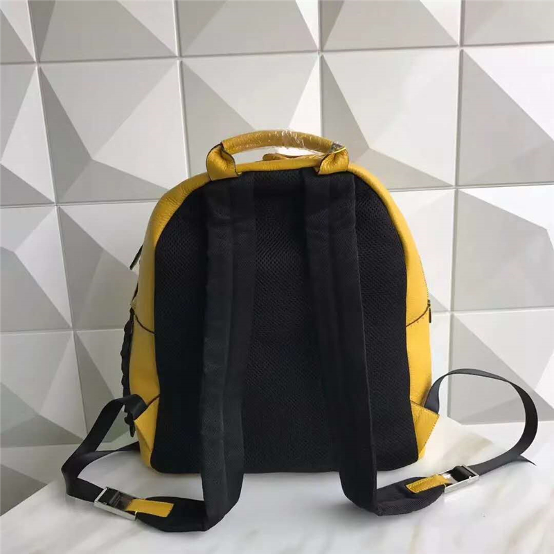 - 详细介绍:Fendi芬迪新款经典小怪兽双肩小牛皮背包,采用拼色皮革装饰,带对比色衬里的正面口袋构成了BAG BUGS图案。前侧搭配拉链口袋,侧边加多锯齿状同皮饰条,同色系皮革拉链头,可调节面料肩带,透气工艺网眼背衬,顶部拉链和内袋,镀把金属配件。包型立体,非常灵动,时尚前卫