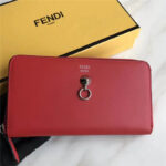 Fendi 芬迪 0212 2017年最新设计小牛皮拉链长夹 金属环 红色