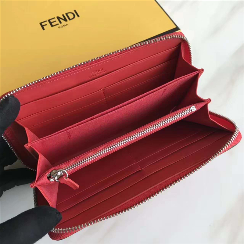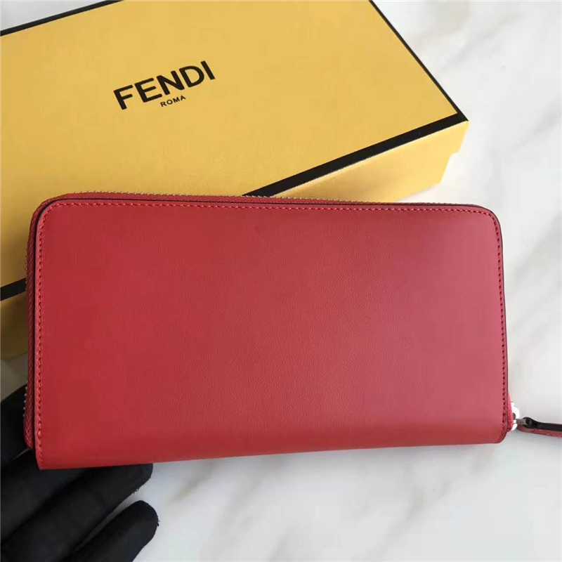 - Fendi 芬迪 0212 2017年最新设计小牛皮拉链长夹 金属环 红色