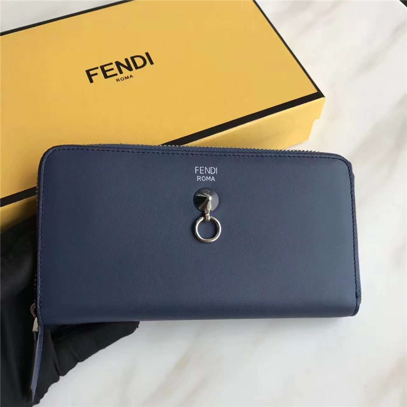 - Fendi 芬迪 0212 2017年最新设计小牛皮拉链长夹 金属环 蓝色
