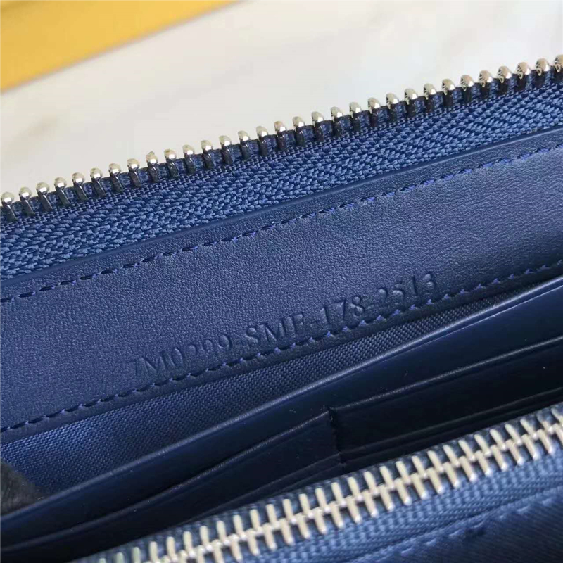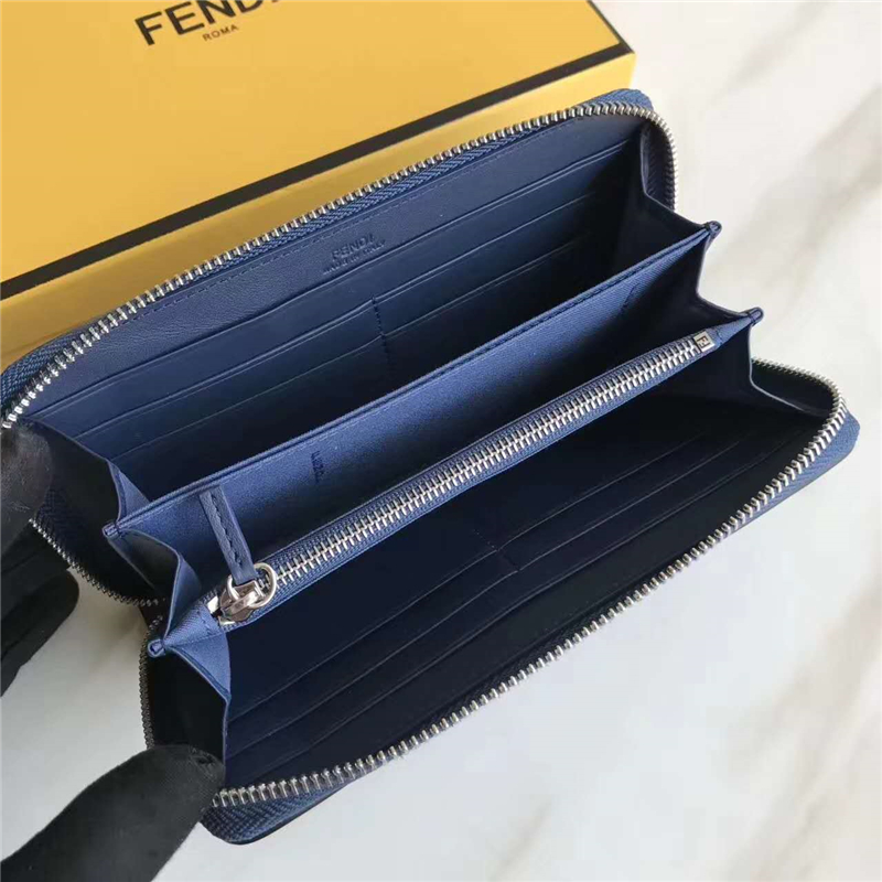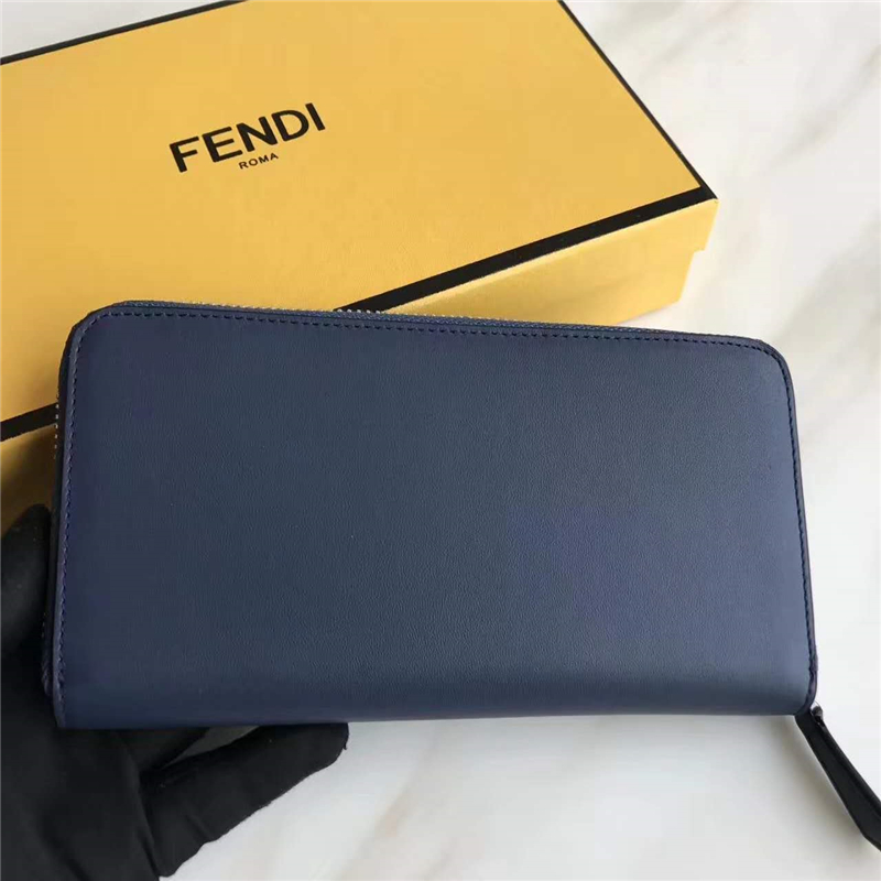 Fendi 芬迪 0212 2017年最新设计小牛皮拉链长夹 金属环 蓝色