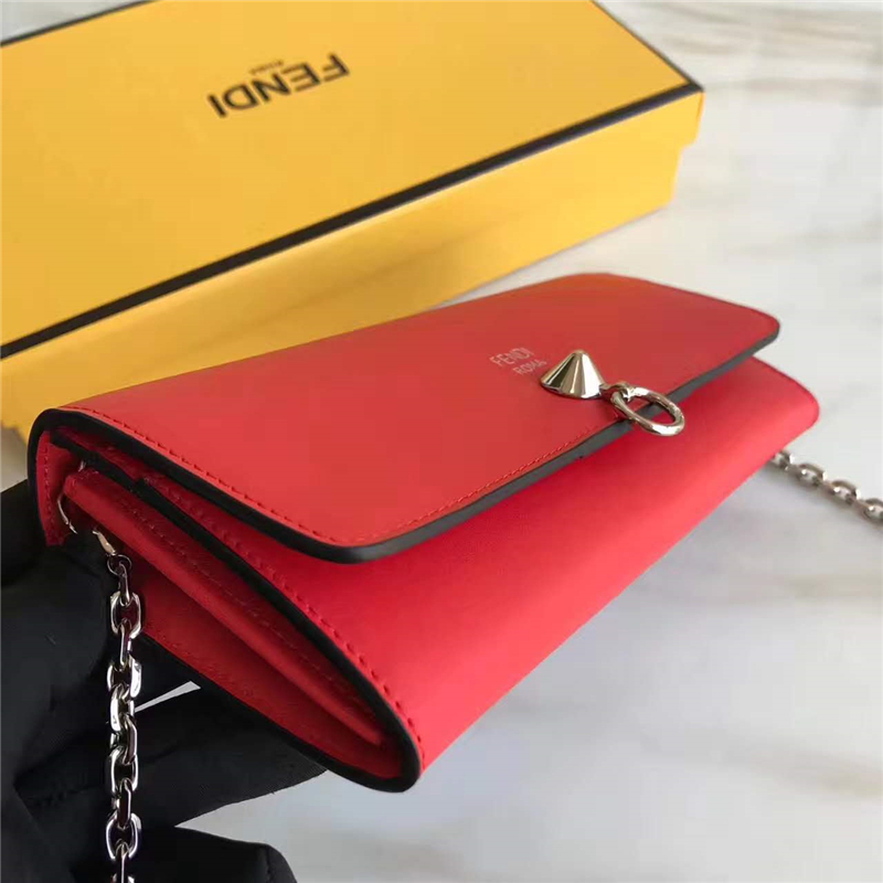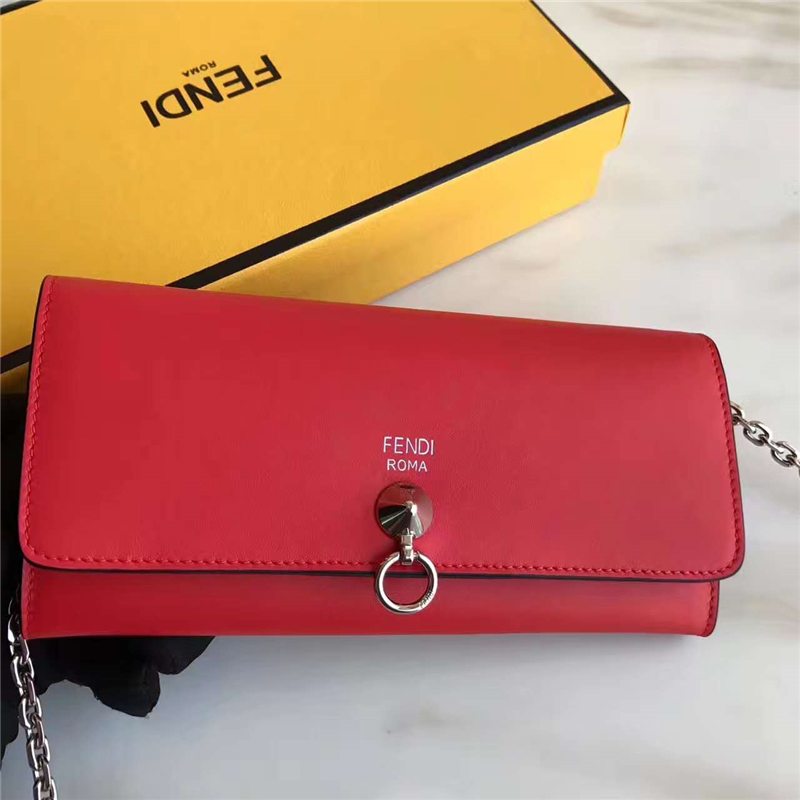 Fendi 芬迪 0252 小牛皮 大号长款皮夹 金属环 可拆卸链条肩带