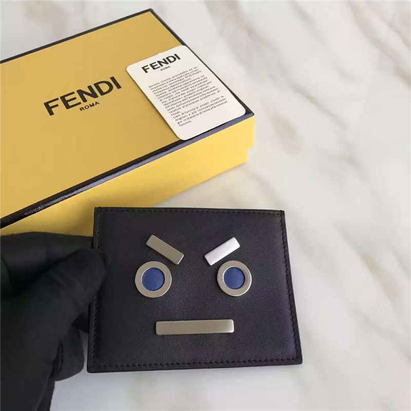 - FENDI 芬迪 2017新款 face 小牛皮三夹层卡片套 黑色