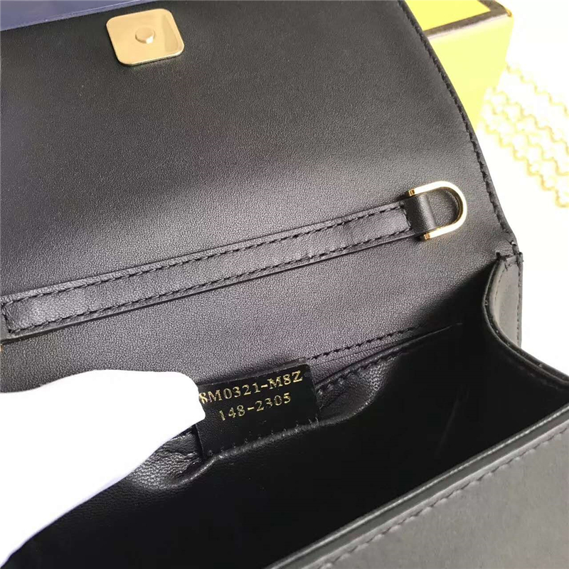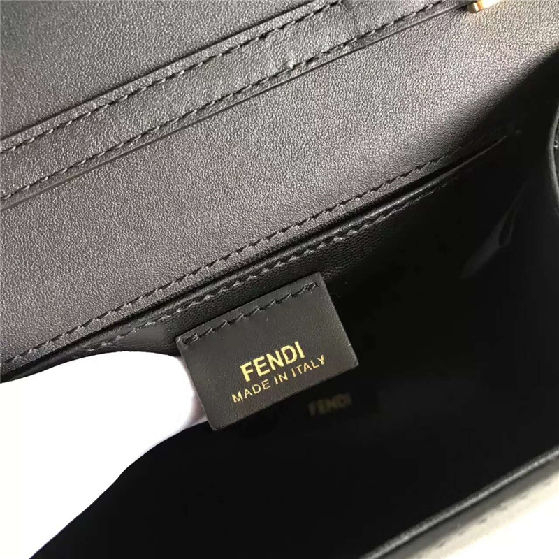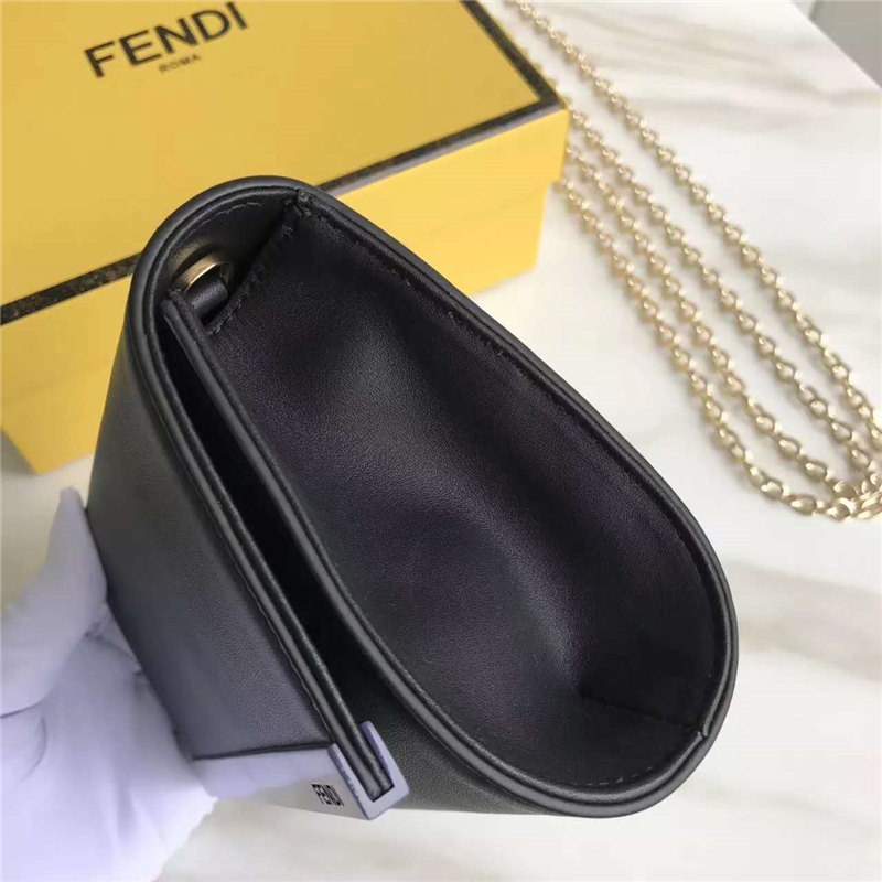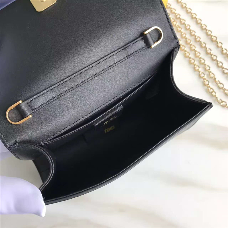 Fendi 芬迪 2305 小牛皮 撞色拼皮迷你单肩链条包 黑色