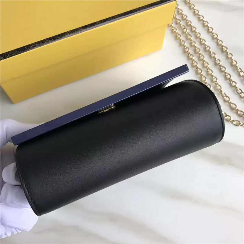 - Fendi 芬迪 2305 小牛皮 撞色拼皮迷你单肩链条包 黑色