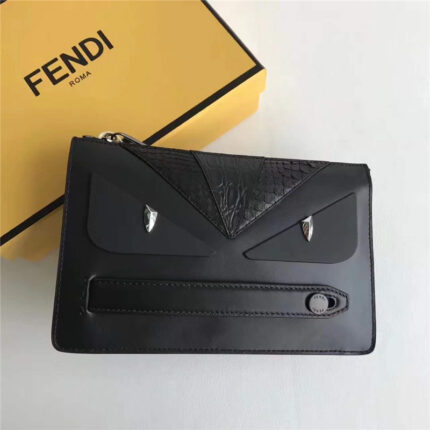 - FENDI 芬迪 351 精选小牛皮荔枝纹小恶魔压制立体BAG BUGS眼睛手拿包 灰黑色