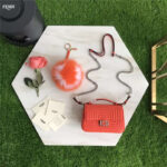 • FENDI 芬迪 8769 时装秀款 Micro Baguette 压纹双面链条包 橘红色