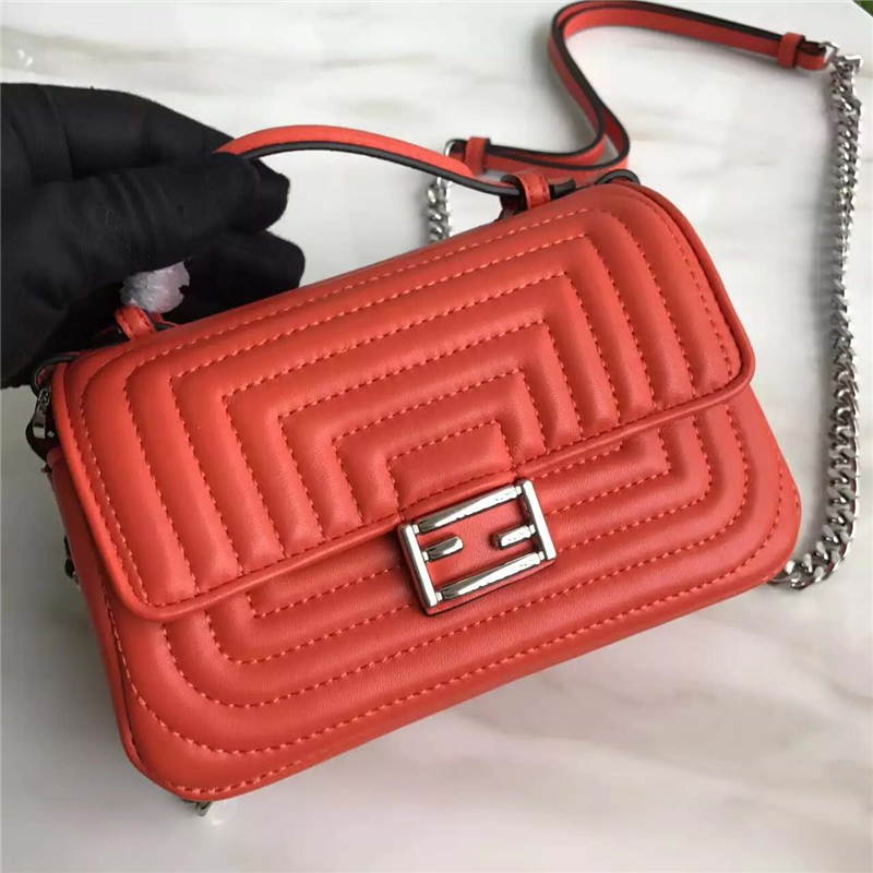 FENDI 芬迪 8769 时装秀款 Micro Baguette 压纹双面链条包 橘红色