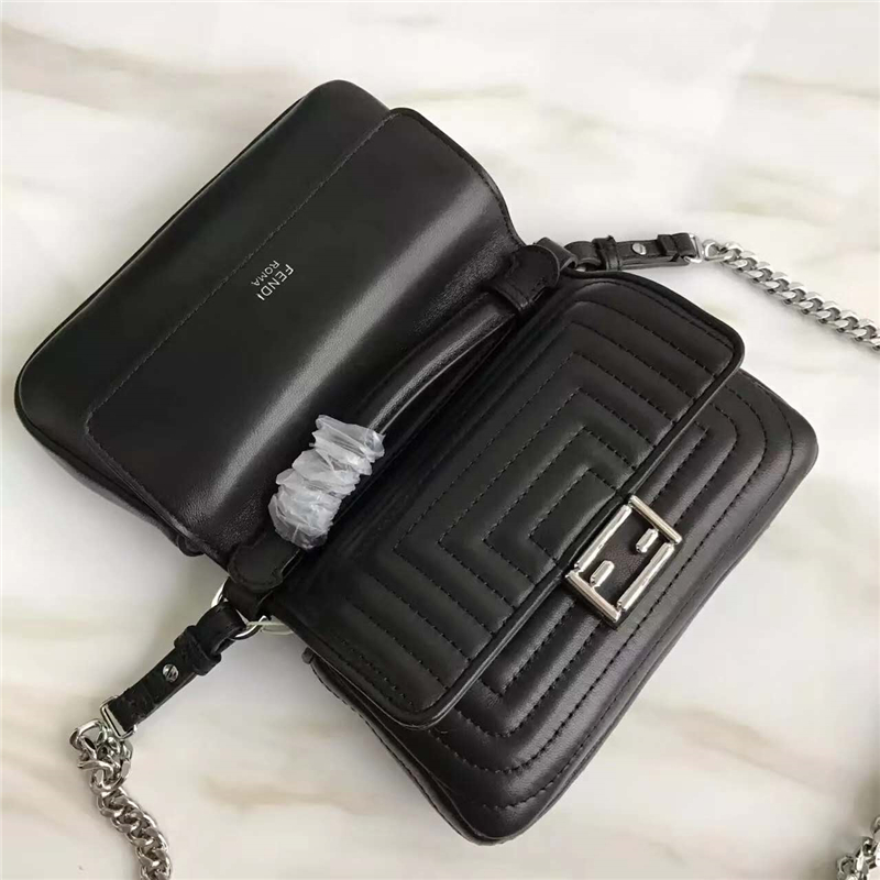 - 详细介绍:FENDI 芬迪 8770 时装秀款 Micro Baguette 压纹双面链条包由2个MICRO BAGUETTE造型隔层为不可拆分的双面包,正面翻盖缝线细节,装饰双F搭扣。内里有2个卡片夹层和平盖袋。可拆卸金属链条肩带,单提手,镀钯金属配件