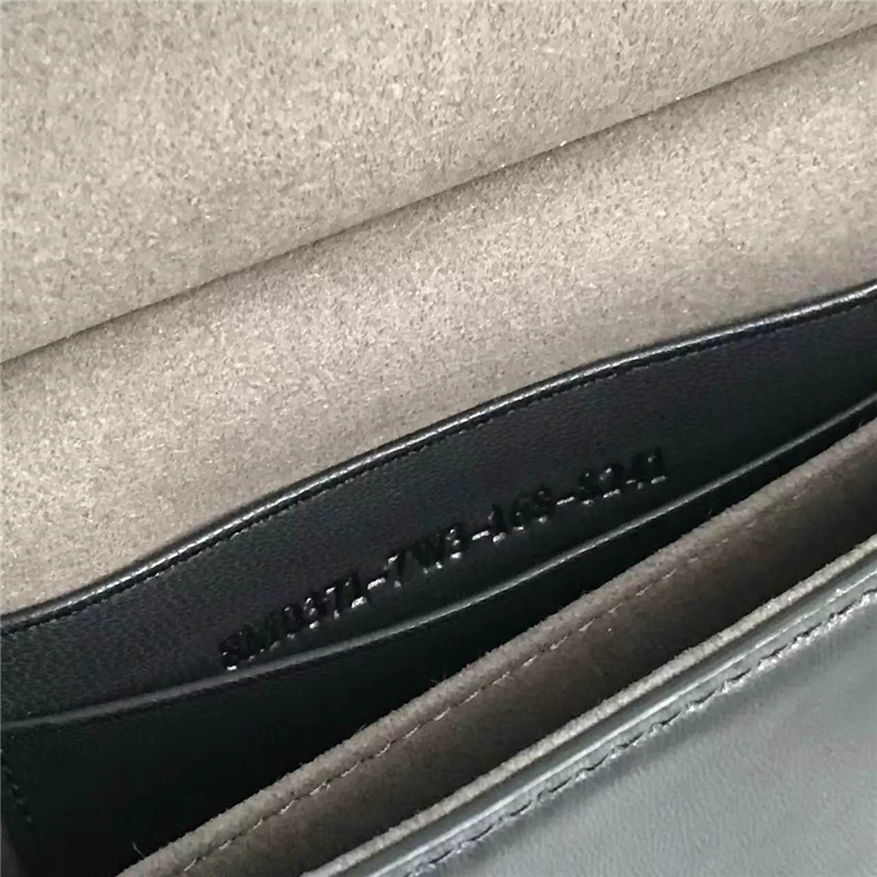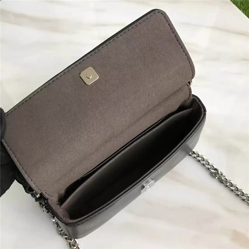 - 结构:双面翻盖,正面装饰双F搭扣。内里有2个卡片夹层和平盖袋。可拆卸金属链条肩带,单提手,镀钯金属配件