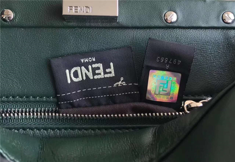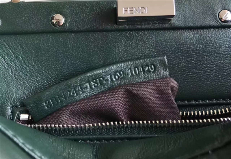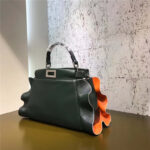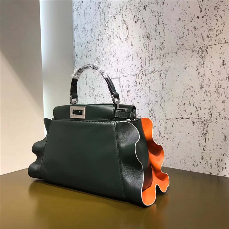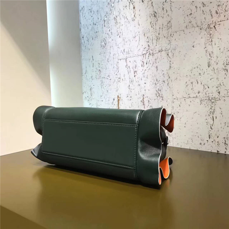 - FENDI 芬迪 8773 2107时装秀款 波纹荷叶边 小牛皮拼色 单肩手提包 墨绿色