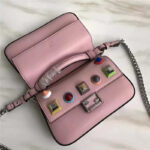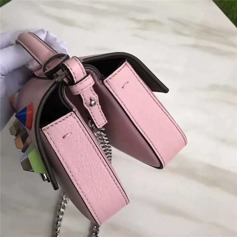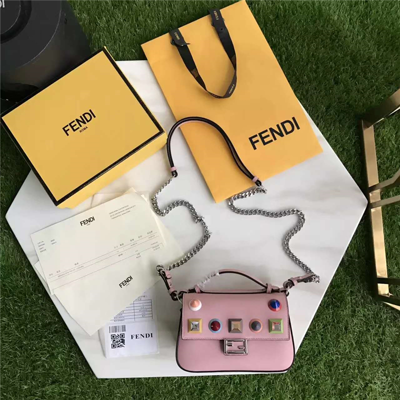 - FENDI 1765 17新款小牛皮彩色铆钉包 两面开合 双F扣链条包 粉色