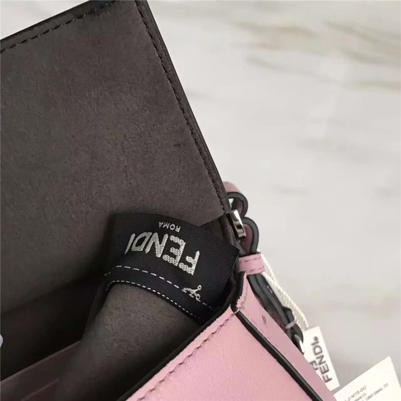 FENDI 1765 17新款小牛皮彩色铆钉包 两面开合 双F扣链条包 粉色