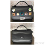 - FENDI 1765 17新款小牛皮彩色铆钉包 两面开合 双F扣链条包 黑色彩色铆钉
