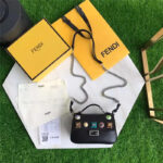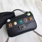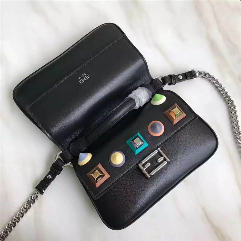 FENDI 1765 17新款小牛皮彩色铆钉包 两面开合 双F扣链条包 黑色彩色铆钉