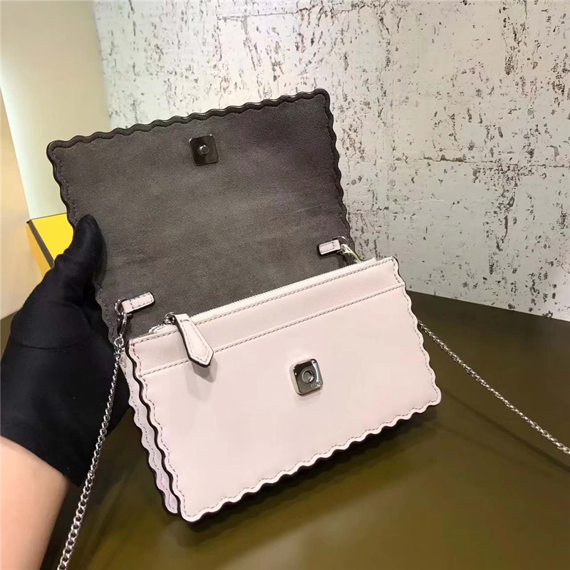 - 详细介绍:Fendi 2017新款 Tube Faces 小牛皮 俏皮链条包,俏皮新模样,融合了利落廓形和小巧身段,装饰金属铆钉和花朵造型皮革 贴花,前副包盖磁性开合,配有可拆卸链条肩带,实用的同时增添了满满的个性和新鲜感,虏获不少少女心!