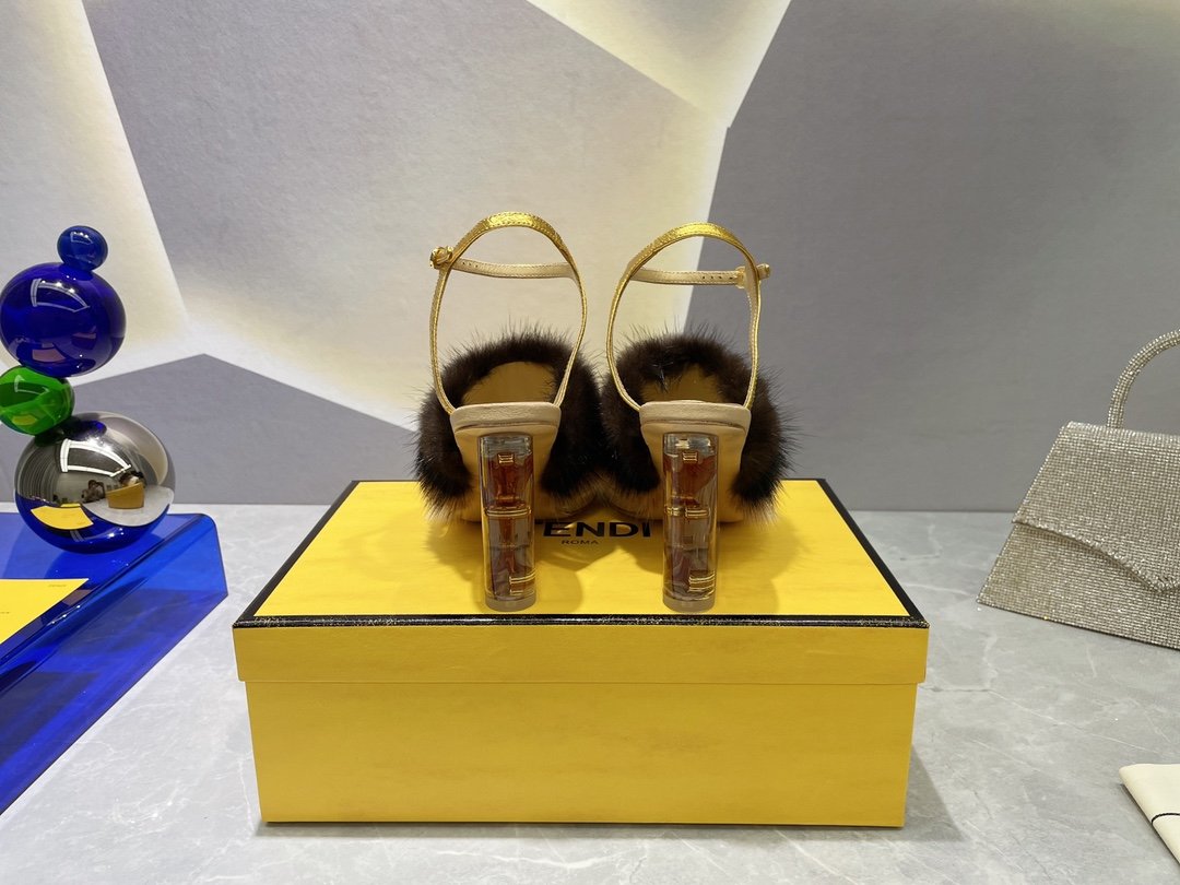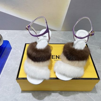 Fendi First 女式白色水貂高跟凉鞋 8X8275AI11F1H00