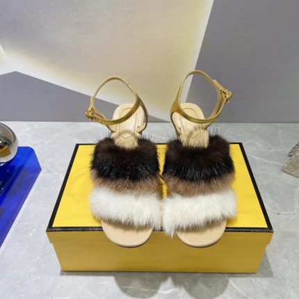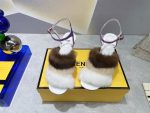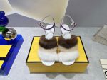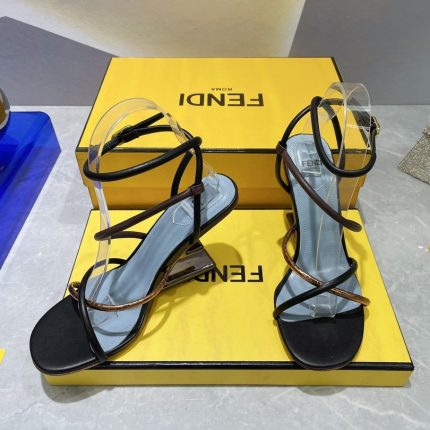 白色金属斜F形雕刻鞋跟,透明有机玻璃覆盖。