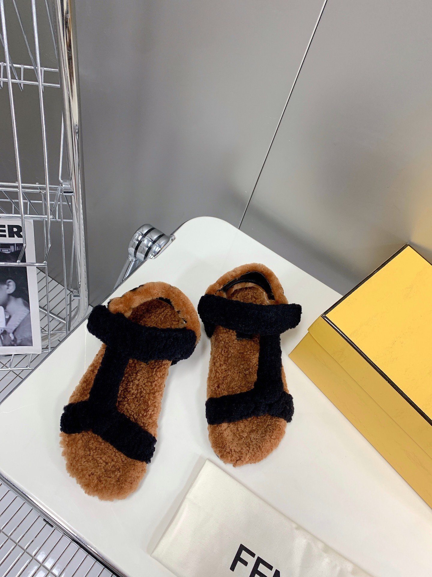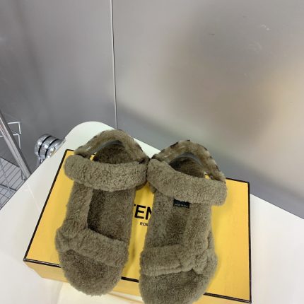 Fendi First 女式羊毛皮凉鞋黑色